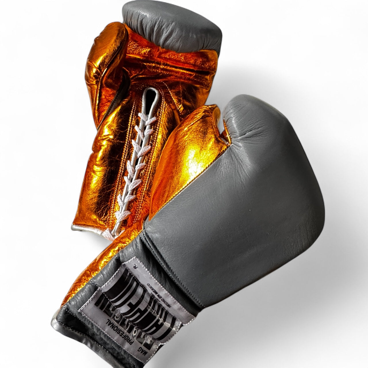 Crafted in Mexico with precision and pride, these 16oz Campeon gloves combine traditional Mexican craftsmanship with a bold modern colorway. The inner metallic orange palm brings energy and flash, while the sleek grey exterior gives a professional finish.